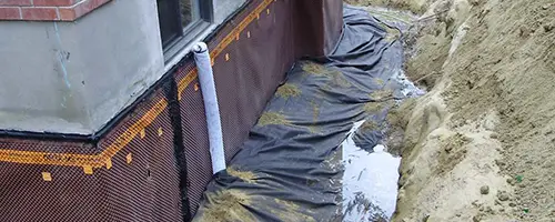 Installed around the outside foundation to stop groundwater before it reaches basement walls. - Foundation Perimeter Drain Systems