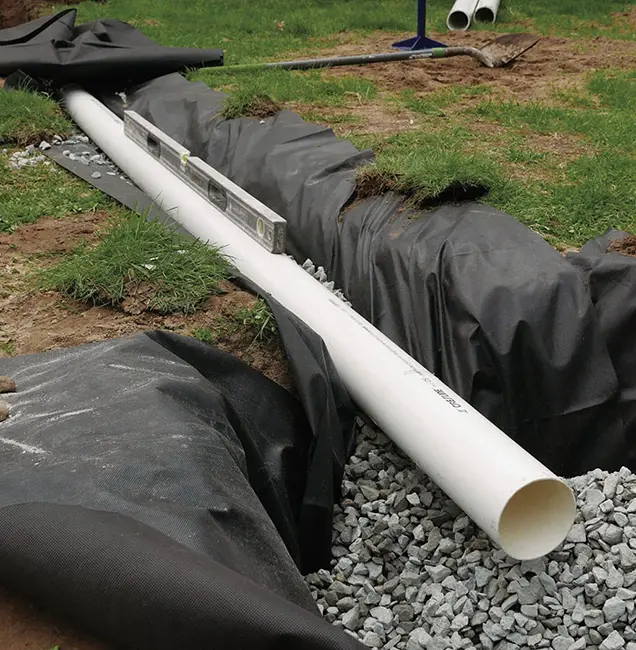 Periodic inspection ensures that the drainage pipe and gravel trench remain clear and functioning properly.